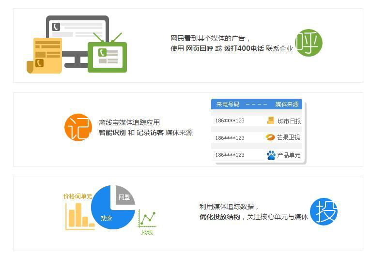 准确披露网民在搜索引擎(包括但不限于百度,谷歌,搜狗)提交的搜索词的电话转化数据;统计着陆页电话数,对各广告转化效果进行评估。